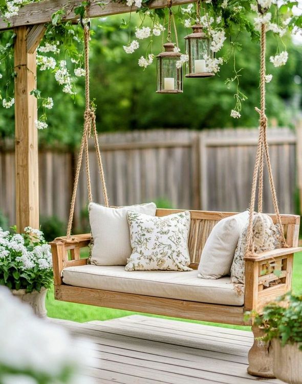 Сейчас мы уже готовы похвастаться большим спектром работ в наших материалах: подушки для садовой мебели и лежаков, качели, беседки, портьеры на террасах, оформление пляжных зон и зон у бассейна, а также многое другое.